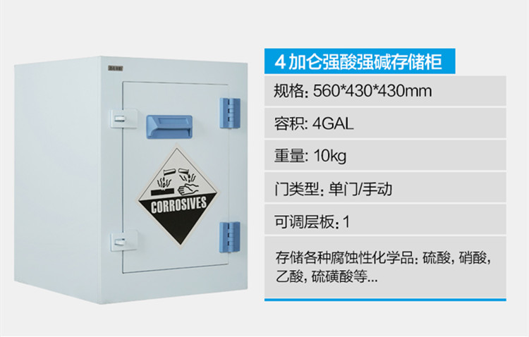 強(qiáng)酸堿儲(chǔ)存柜具有耐強(qiáng)酸、強(qiáng)堿與抗腐蝕。適用于實(shí)驗(yàn)室各類化學(xué)品及器皿的安全存儲(chǔ)。
